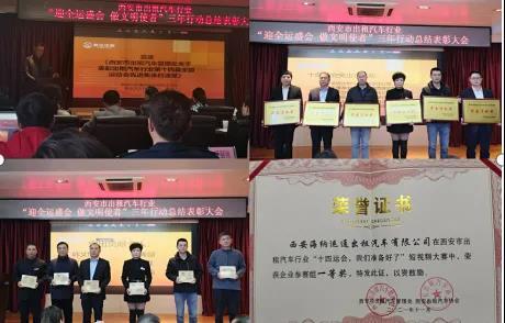 海納運(yùn)通出租公司在全國第十四屆運(yùn)動會、第十一屆殘運(yùn)會暨第八屆特奧會舉辦過程中,奮勇?lián)?dāng)踐使命、轉(zhuǎn)型升級謀發(fā)展、精誠團(tuán)結(jié)聚合力、精益求精抓管理,圓滿順利完成了各項服務(wù)保障工作,被西安市出租汽車管理處授予“第十四屆全國運(yùn)動會西安出租汽車服務(wù)保障突出貢獻(xiàn)獎”!并榮獲“十四運(yùn)會,我們準(zhǔn)備好了”短視頻大賽一等獎。